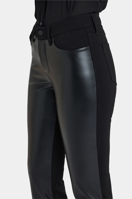 Vegan Leather And Ponte Marilyn Straight Pants - Black