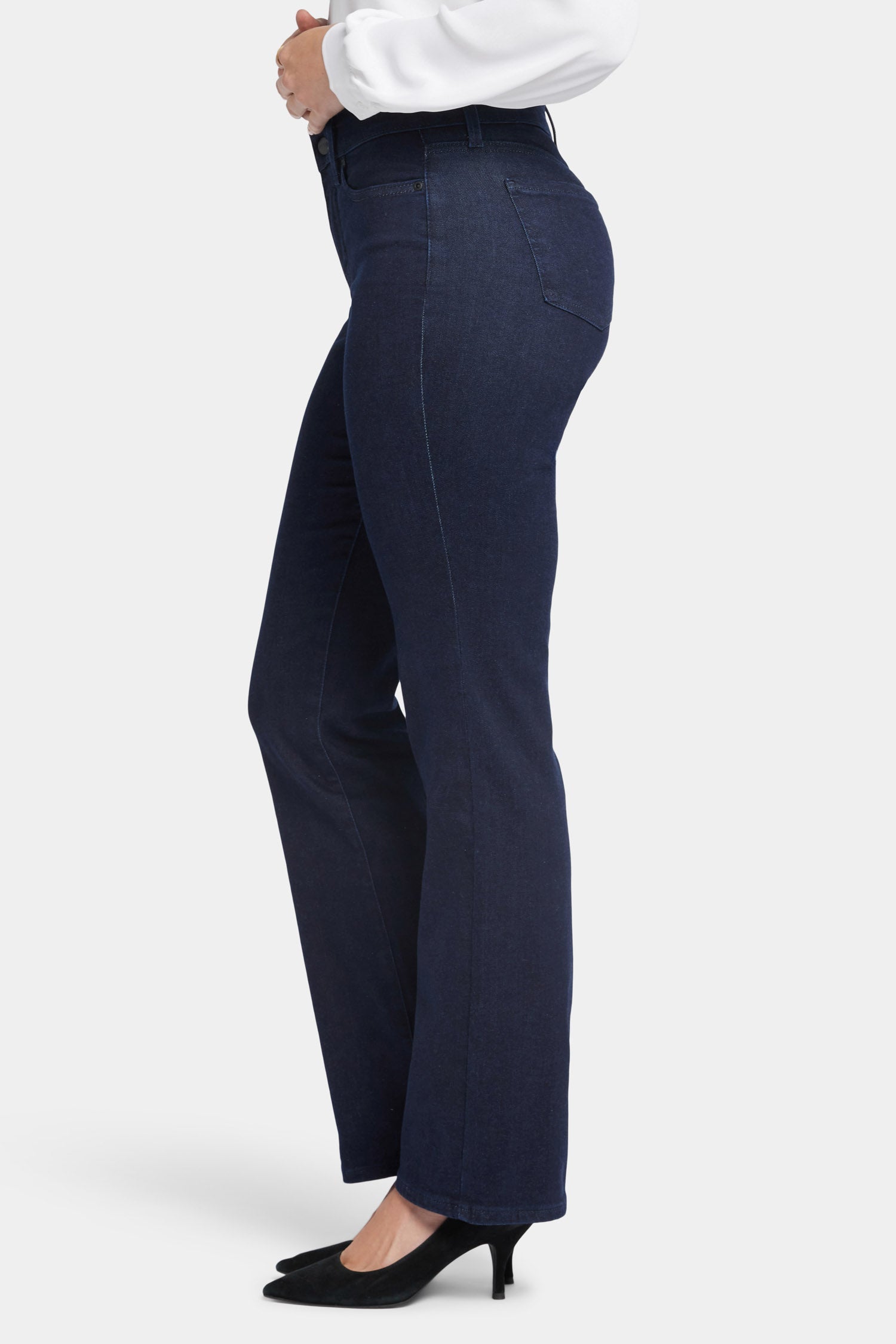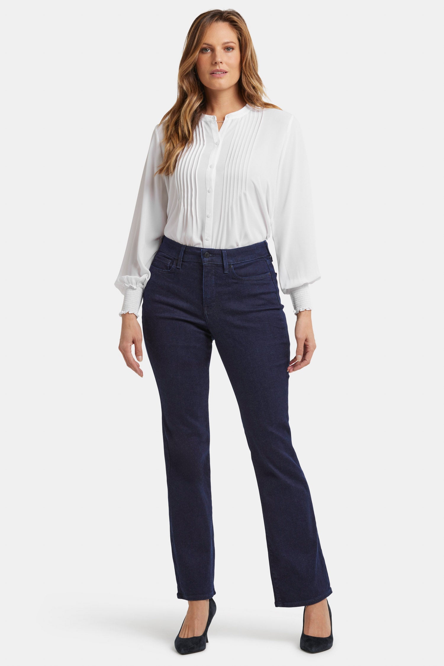 Effortlessly chic, NYDJ's Blake Slim Flared Jeans with High Rise have an elongated inseam, perfect for dressing up or down. This pair features a flattering slim leg that flares out at the hem for a bold statement. Our Lift Tuck® Technology uses a proprietary slimming panel with a patented criss-cross design to shape and support your curves. Finished with five-pocket styling, zip fly and button closure. Rinse is our deepest indigo wash. This jean is made with earth-friendly methods that result in reduced consumption of water, chemicals and/or energy.
