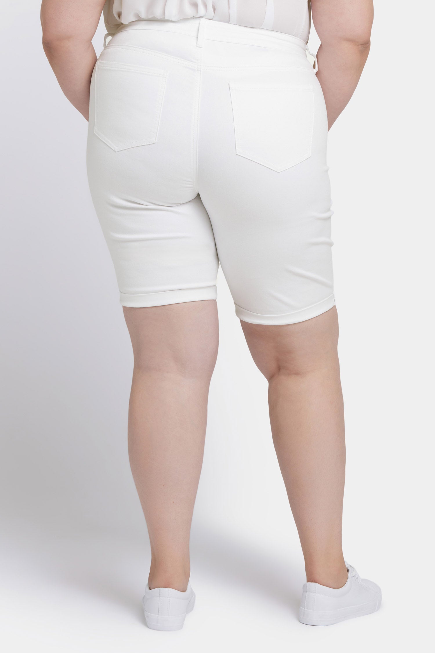 Bask in the sunshine and the sure-to-be-coming compliments in NYDJ’s Briella 11 Inch Denim Shorts in Plus Size with Roll Cuffs. A longer inseam gives you just the right amount of comfort and coverage for active days, while the rolled cuff offers a touch of polish. This essential short features our signature Lift Tuck® Technology to slim from within. Finished with classic five-pocket styling, zip fly and button closure.