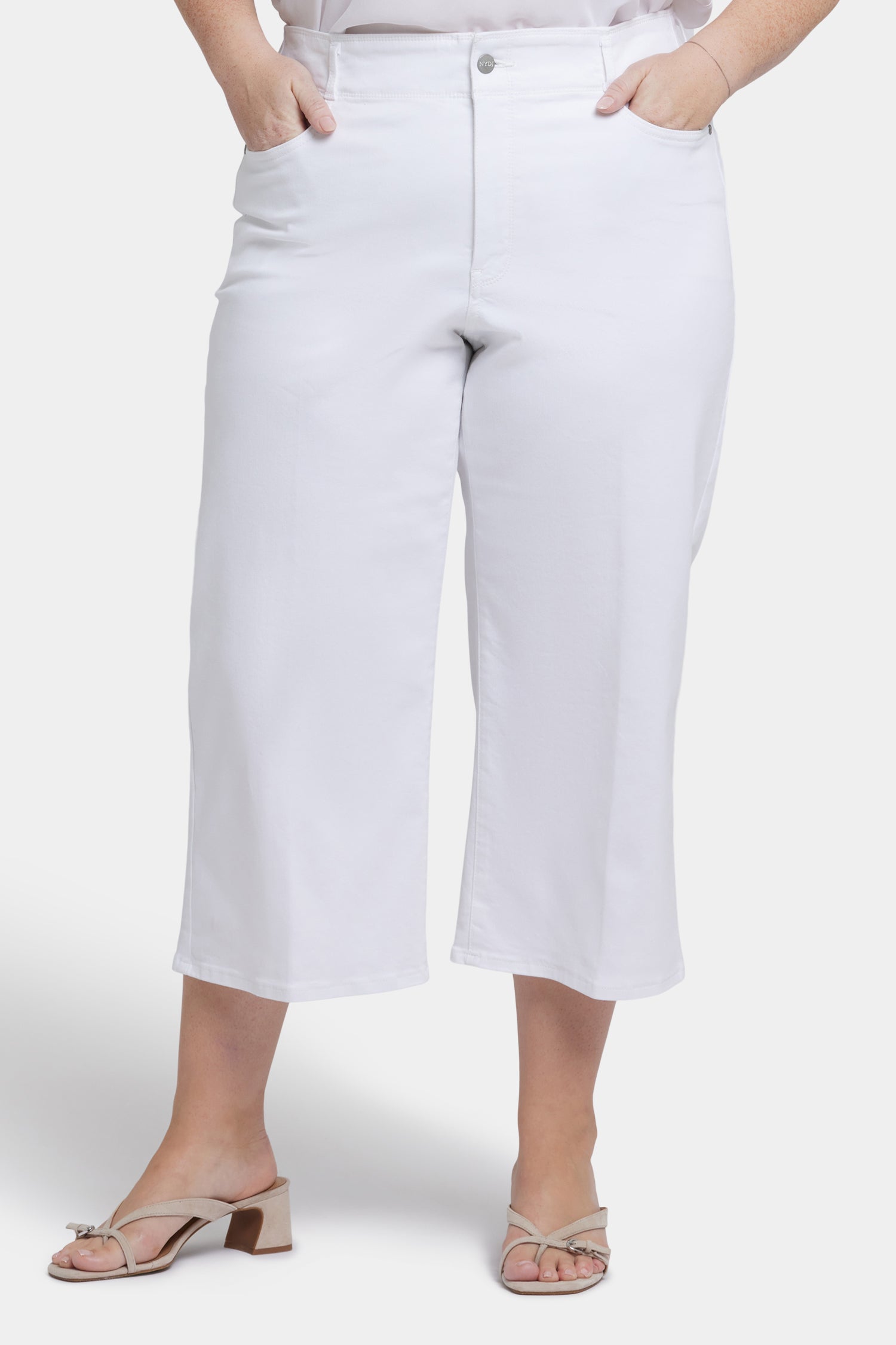 Brigitte Wide Leg Capri Jeans In Plus Size - Optic White