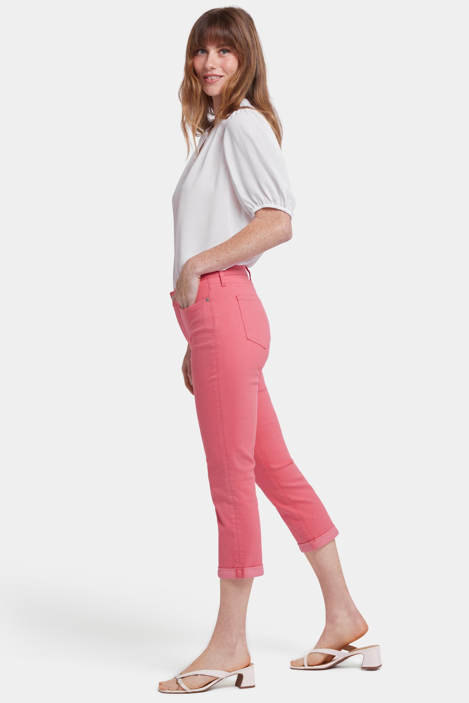 With a cool capri length and flattering slim fit, NYDJ's Chloe Skinny Capri Jeans in Cool Embrace® Denim are definitely on your must-wear list for spring and summer. Cool Embrace® Denim makes hot days a breeze, using temperature-regulating technology to keep you cool and comfortable. Our Lift Tuck® Technology uses a proprietary slimming panel with a patented criss-cross design to shape and support your curves. Finished with five-pocket styling, zip fly, button waist and roll cuffs. This jean is made with earth-friendly methods that result in reduced consumption of water, chemicals and/or energy.