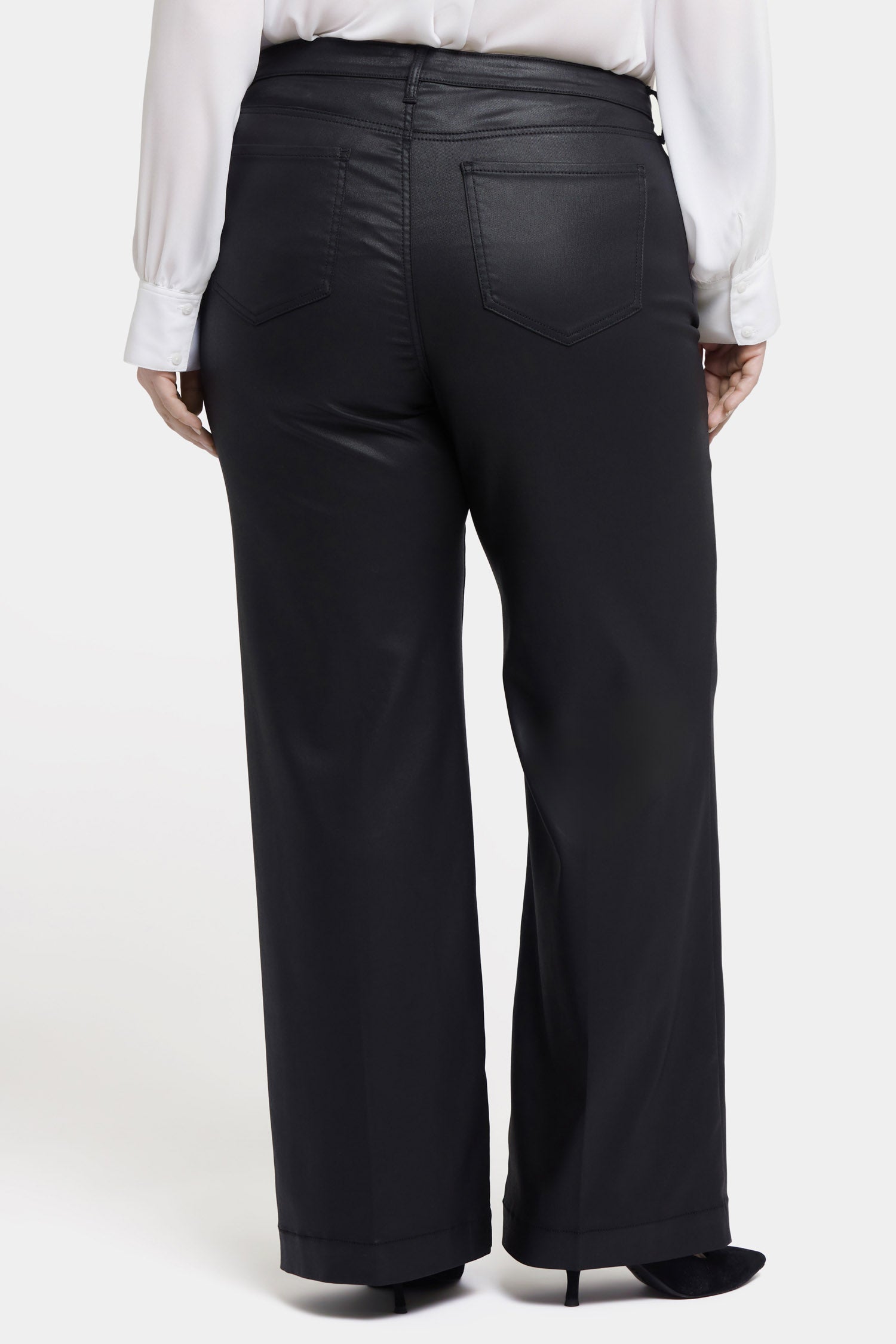 Coated Teresa Wide Leg Jeans In Plus Size - Black Coated