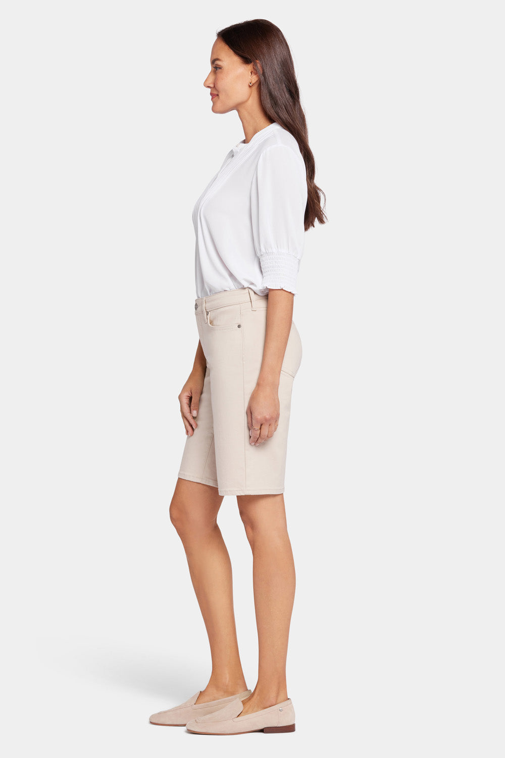 NYDJ's Lilly Denim Shorts are your new go-to, featuring a relaxed longer fit designed to hit just above the knee. Our exclusive Lift Tuck® Technology flattens your front, using a proprietary slimming panel with a patented criss-cross design for an ultra-flattering fit that completes any outfit. Finished with classic five-pocket styling, zip fly and button closure. This short is made with earth-friendly methods that result in reduced consumption of water, chemicals and/or energy.