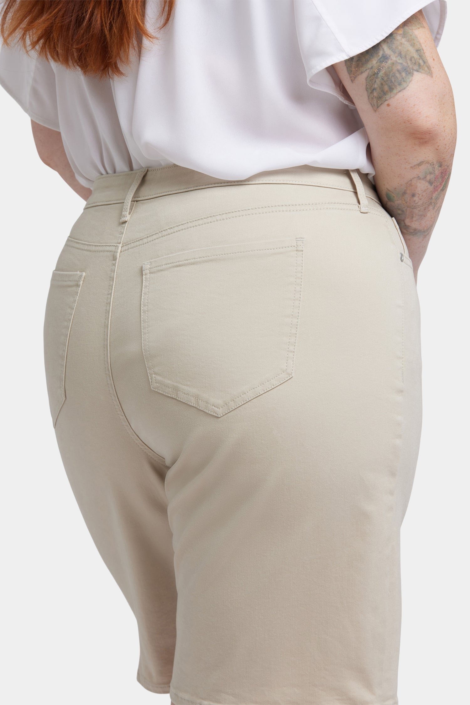 NYDJ's Lilly Denim Shorts in Plus Size are your new go-to, featuring a relaxed longer fit designed to hit just above the knee. Our exclusive Lift Tuck® Technology flattens your front, using a proprietary slimming panel with a patented criss-cross design for an ultra-flattering fit that completes any outfit. Finished with classic five-pocket styling, zip fly and button closure. This short is made with earth-friendly methods that result in reduced consumption of water, chemicals and/or energy.