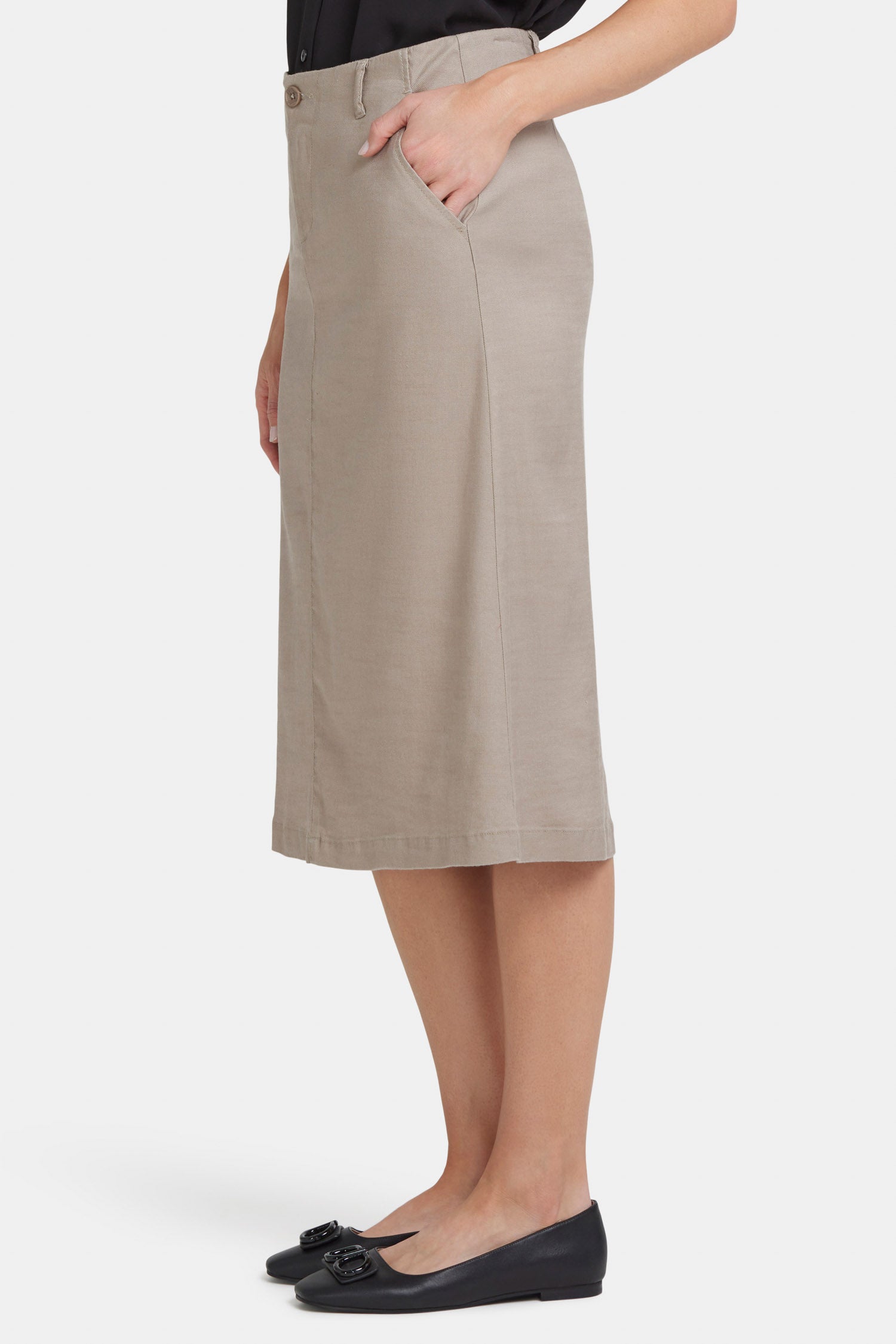 NYDJ's Marilyn A-Line Skirt in Stretch Linen is designed with figure-defining back waist darts in breathable, flexible linen-blend fabric. Like our popular Marilyn Straight Pants in Stretch Linen, this versatile midi skirt features belt loops at the waistband. Finished with a zip fly, button closure and front slash pockets.