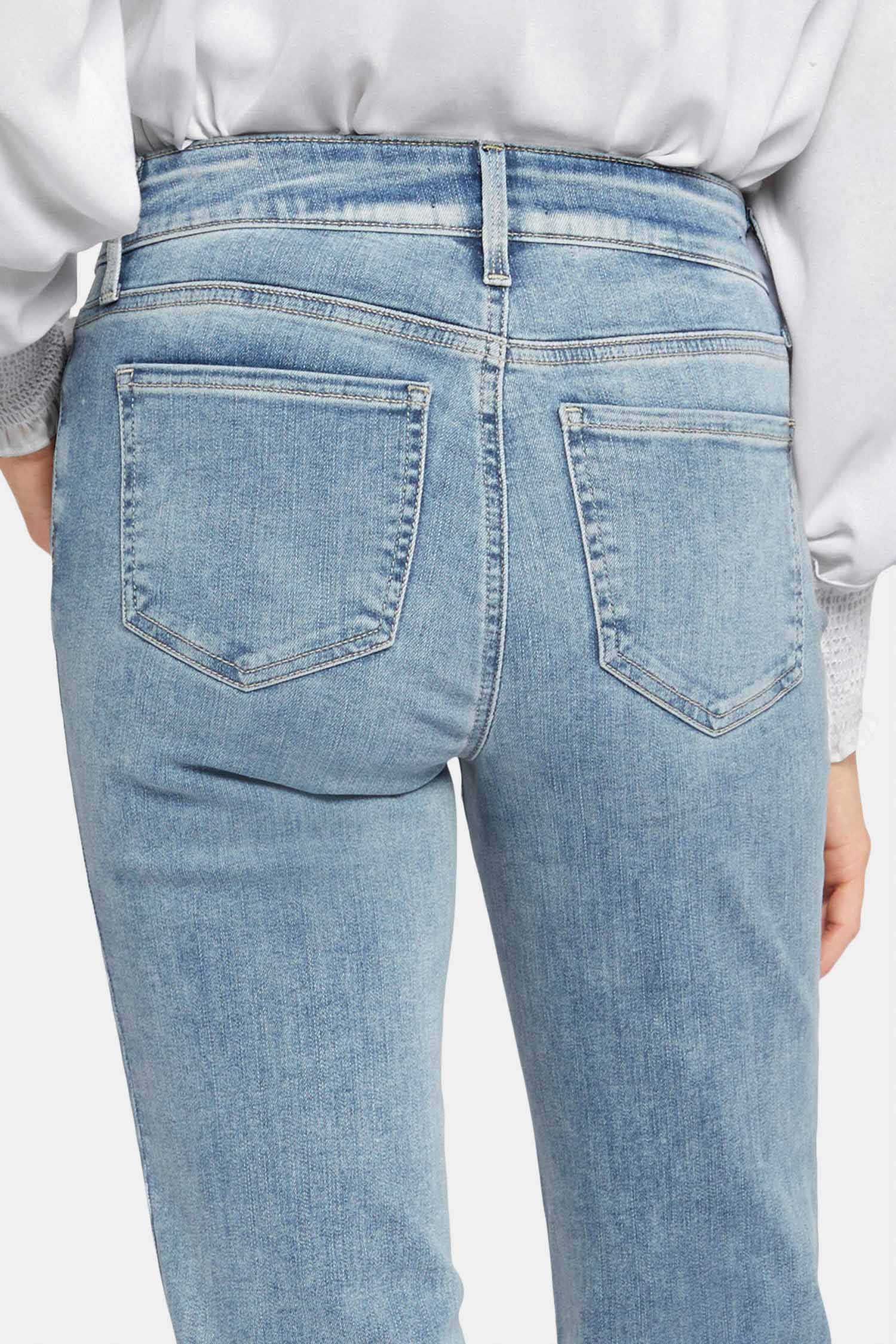The easy, figure-elongating construction of the NYDJ Marilyn Straight Jeans in Haley Blue pairs well with everything, thanks to a flattering waist and a versatile straight-leg fit. Lift Tuck® Technology uses a proprietary slimming panel with a patented criss-cross design to shape and support your curves for an always-sleek silhouette. Finished with classic five-pocket styling, zip fly and button closure.