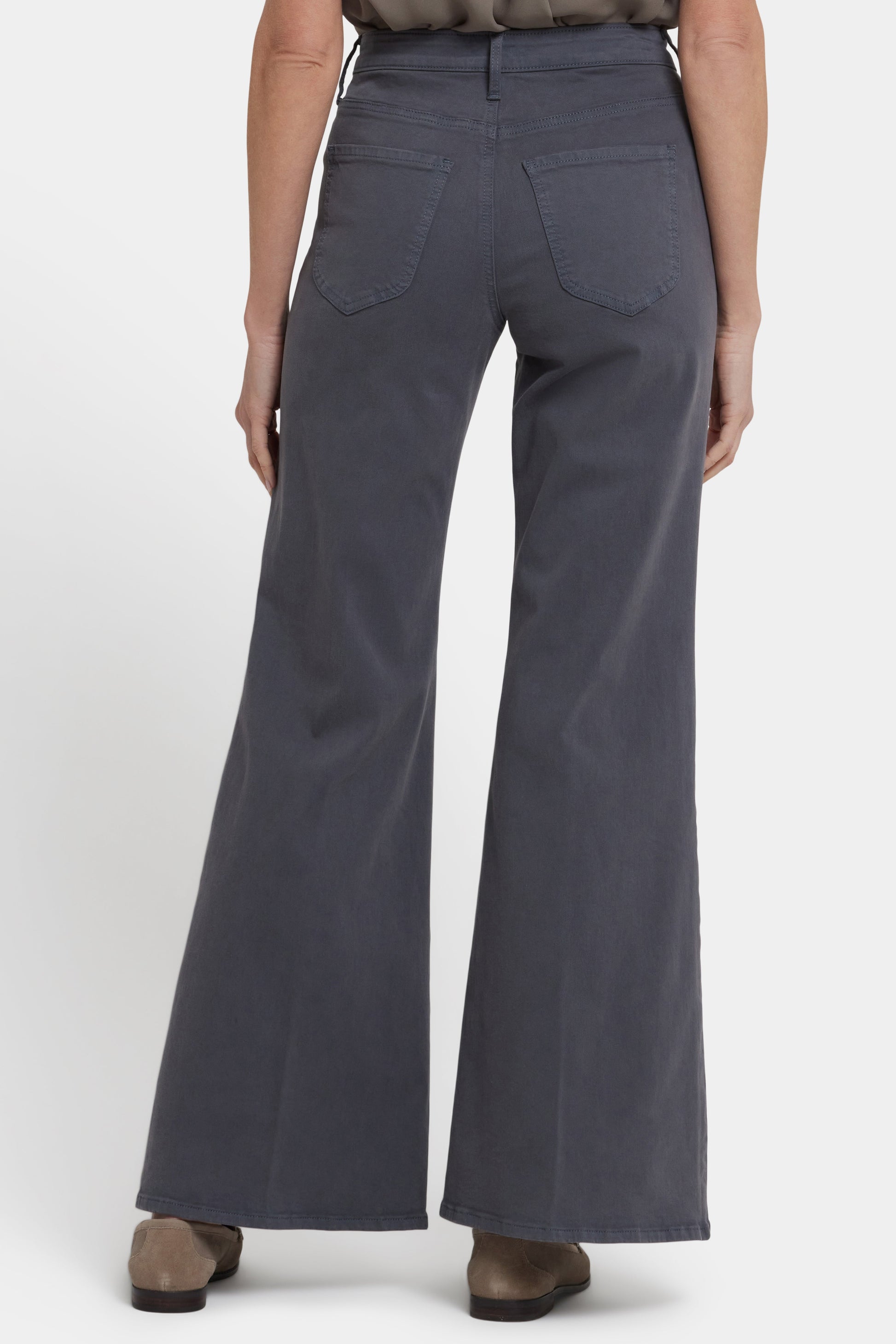 NYDJ's Mia Palazzo Jeans make a bold, breezy statement with their super-flared legs. Sitting high on the waist, this pair has a flattering fit that hugs the hips and thighs and is detailed with center-leg creases. Our Lift Tuck® Technology uses a proprietary slimming panel with a patented criss-cross design to shape and support your curves for an always-sleek silhouette. Features five-pocket styling and a zip fly with button closure. This jean is made with earth-friendly methods that result in reduced consumption of water, chemicals and/or energy.