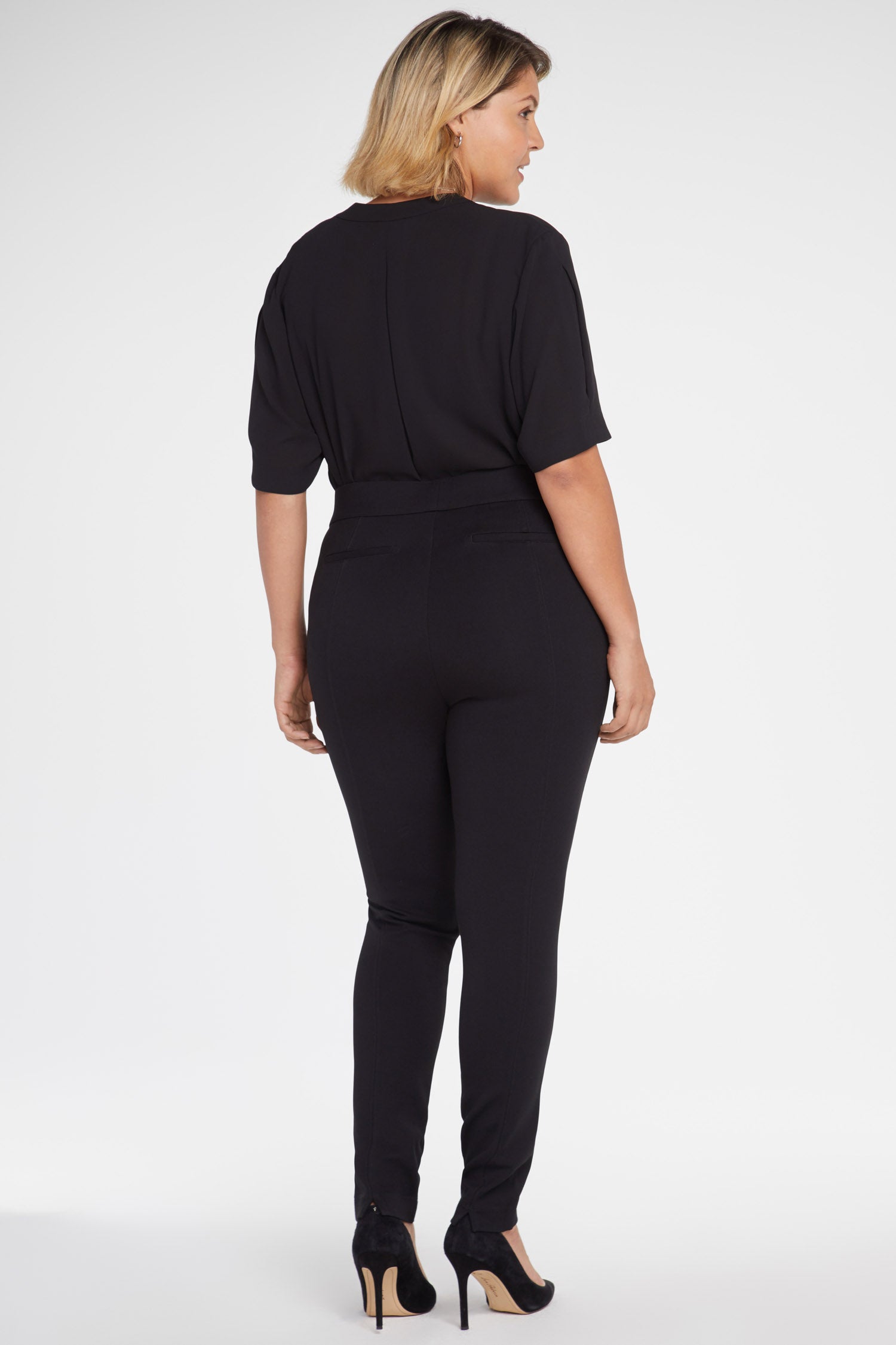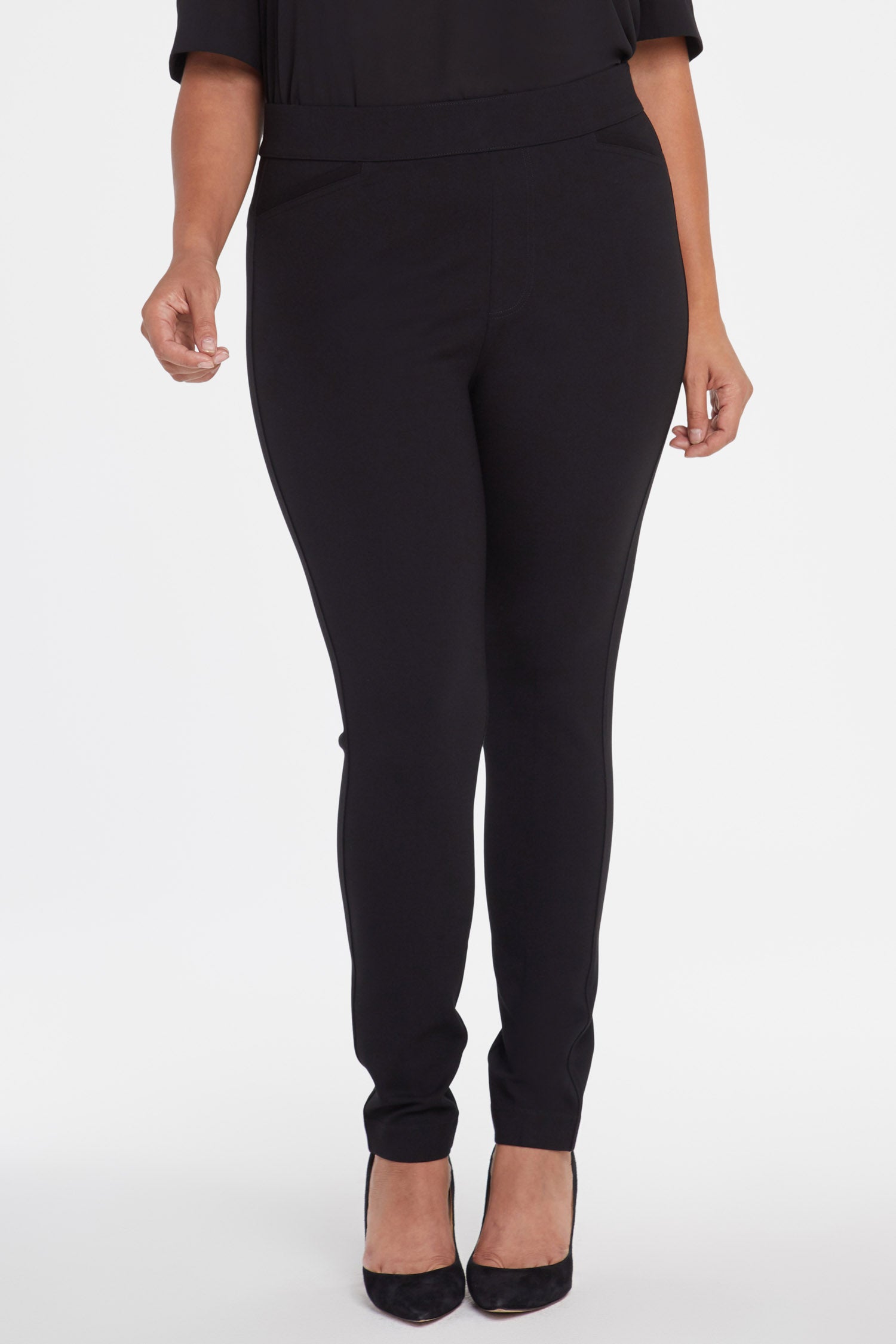 Do it all, all day long—NYDJ's Pull-On Legging Pants in Plus Size will keep up. These incredibly sleek and stretchy bottoms feature advanced compression ponte that sculpts and supports. Designed to make curves look amazing while delivering around-the-clock comfort, they have a pull-on waistband, flattering back seaming and back slits for ease of movement. A faux fly, faux angled front welt pockets and faux back welt pockets add a subtle tailored touch that keeps the styling appropriate from workday to after hours to weekend. Like our denim, these bottoms include Lift Tuck® Technology, which uses a proprietary slimming panel with a patented criss-cross design for a smooth-in-front silhouette and extra lift in back. These legging pants are part of Sculpt-Her™, a collection of compression-contouring essentials with an unparalleled, cutting-edge fit.
