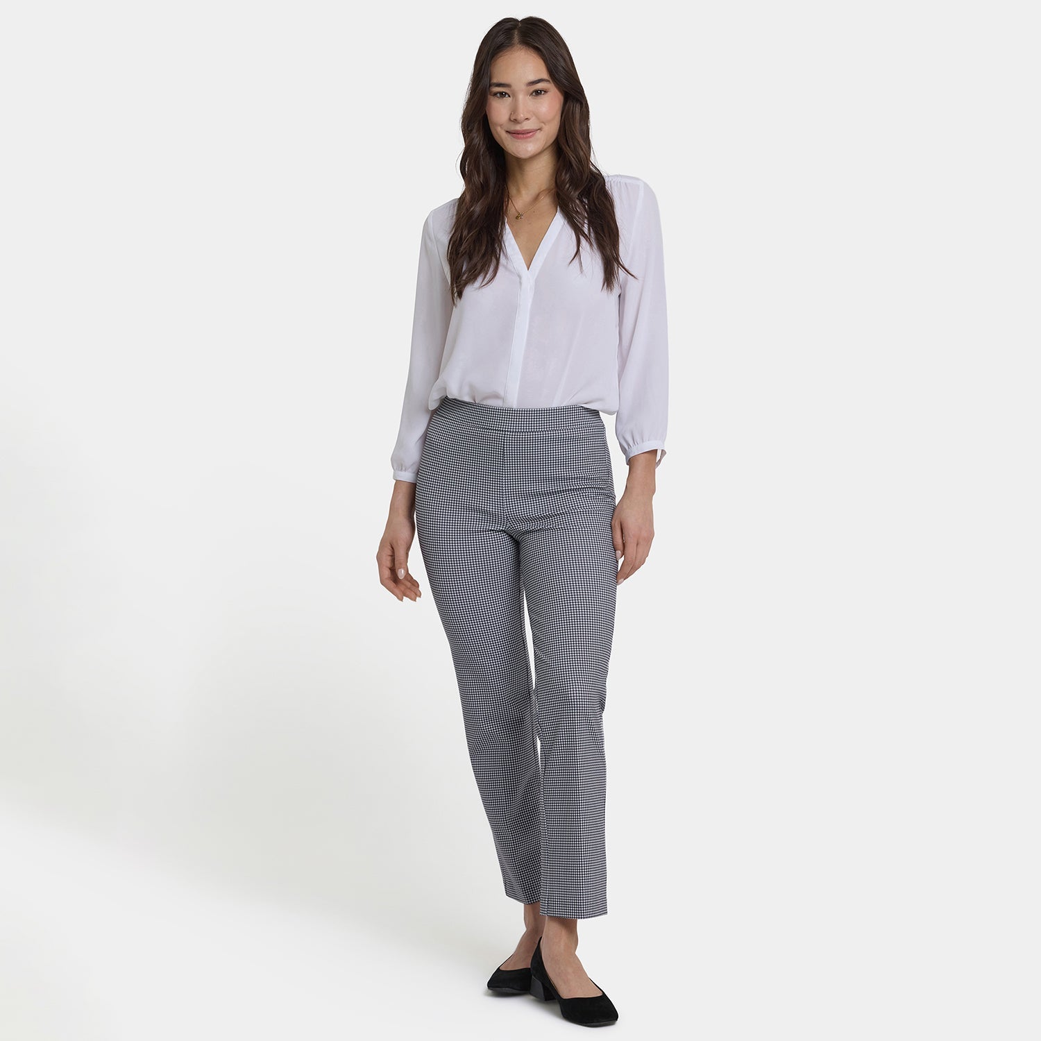 Look and feel your best from workdays to weekends in the Pull-On Slim Ankle Trouser Pants by NYDJ. These trousers are made from super-comfortable ponte knit with back darts and a straight-leg fit that give them a sharp, polished finish. A pull-on waistband enhances their ease of wear, while Lift Tuck® Technology hidden inside uses a proprietary slimming panel with a patented criss-cross design to keep your figure smooth and lifted.
