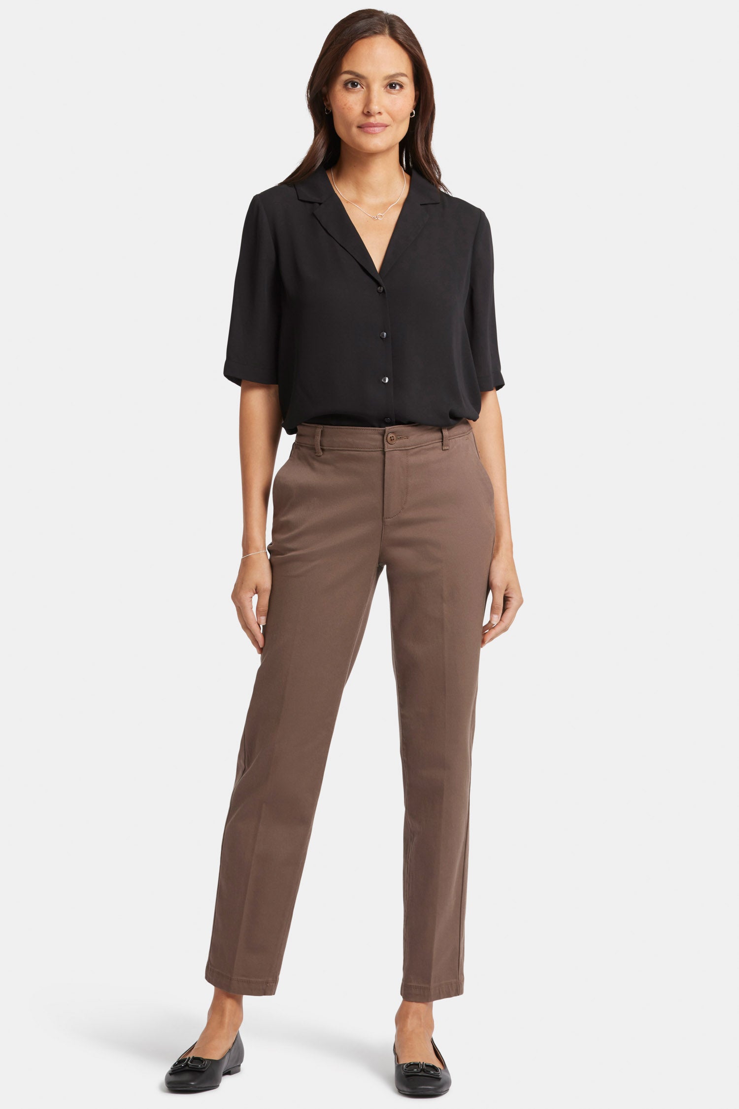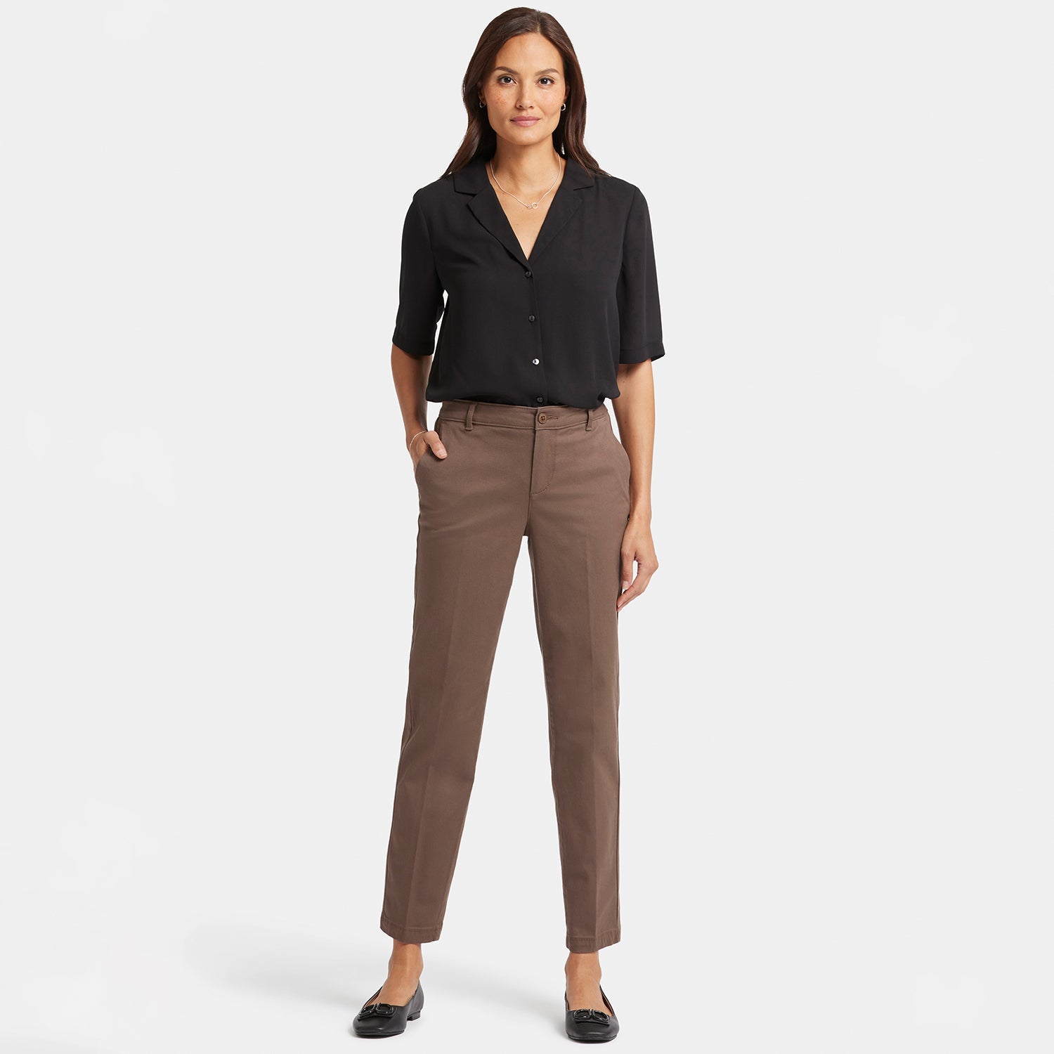 NYDJ's Sadie Slim Pants in soft stretch twill are an absolute closet staple. Polished and sophisticated, they'll elevate your look every time. Finished with front slash pockets, back welt pockets, belt loops and a zip fly with button closure. This pant is made with earth-friendly methods that result in reduced consumption of water, chemicals and/or energy.