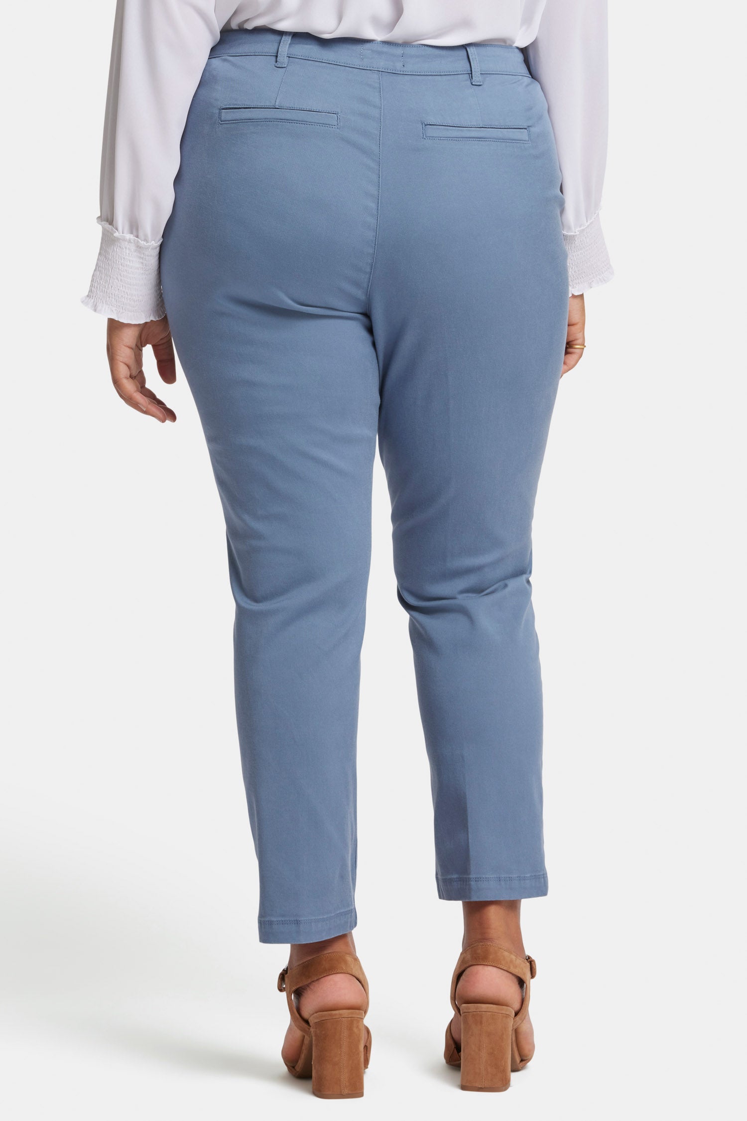 NYDJ's Sadie Slim Pants in Plus Size in soft stretch twill are an absolute closet staple. Polished and sophisticated, they'll elevate your look every time. Finished with front slash pockets, back welt pockets, belt loops and a zip fly with button closure. This pant is made with earth-friendly methods that result in reduced consumption of water, chemicals and/or energy.