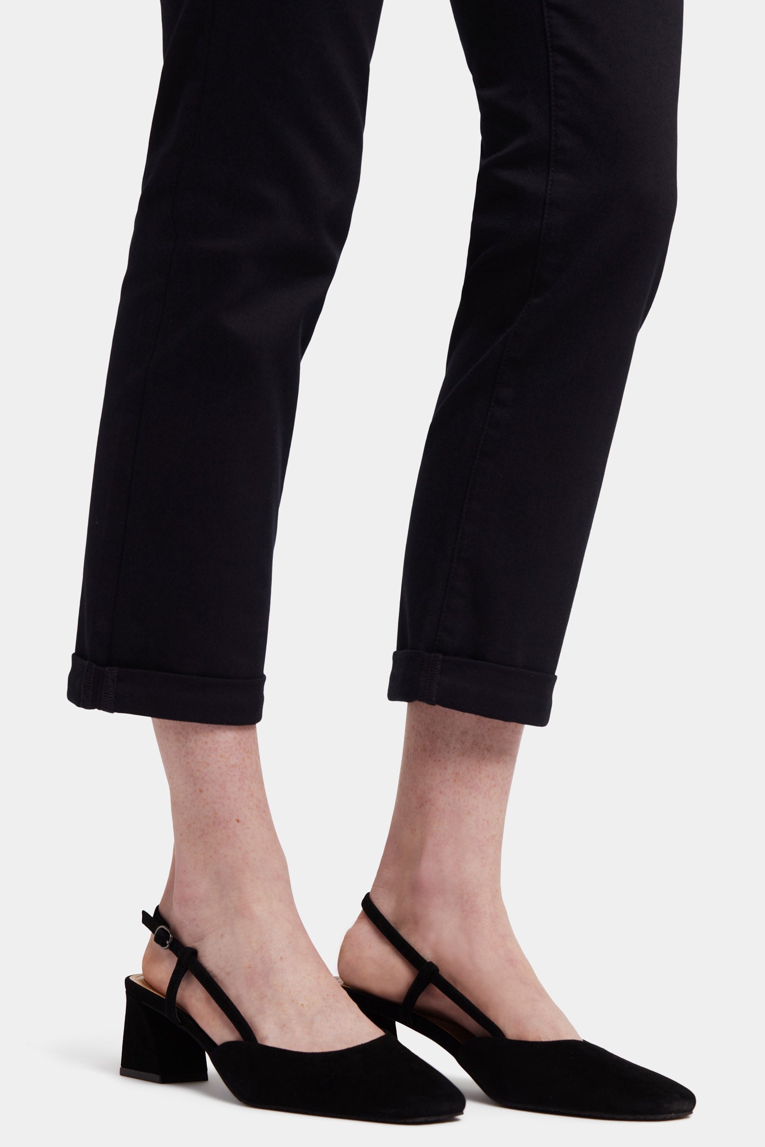 Between skinny and straight, you'll find the perfect body-hugging slim fit in NYDJ’s Sheri Slim Ankle Jeans with Roll Cuffs. Enhance your assets and streamline your silhouette with our signature Lift Tuck® Technology, which flattens and flatters using a proprietary slimming panel with a patented criss-cross design. Features classic five-pocket styling, zip fly and button closure. This jean is made with earth-friendly methods that result in reduced consumption of water, chemicals and/or energy.