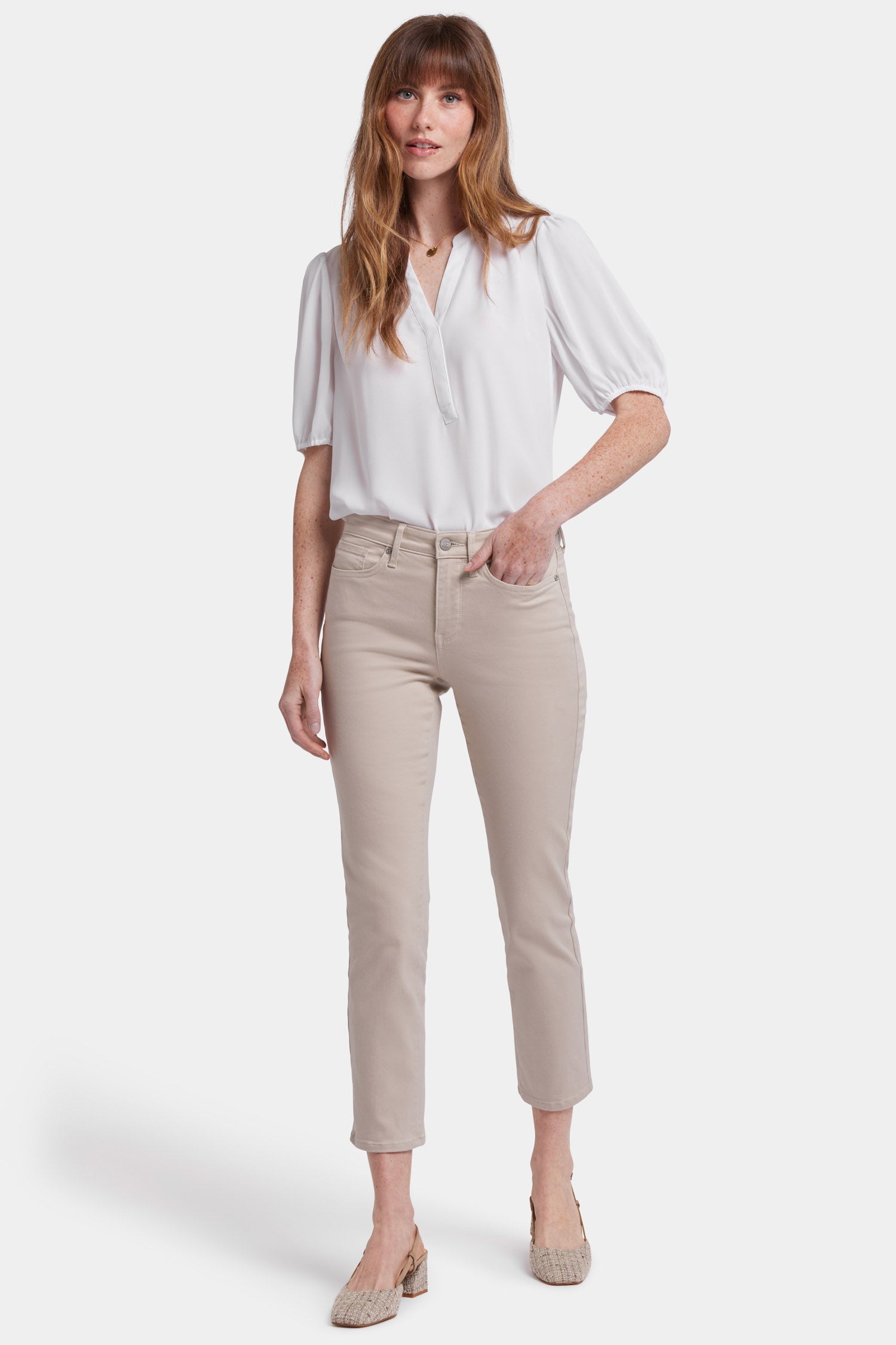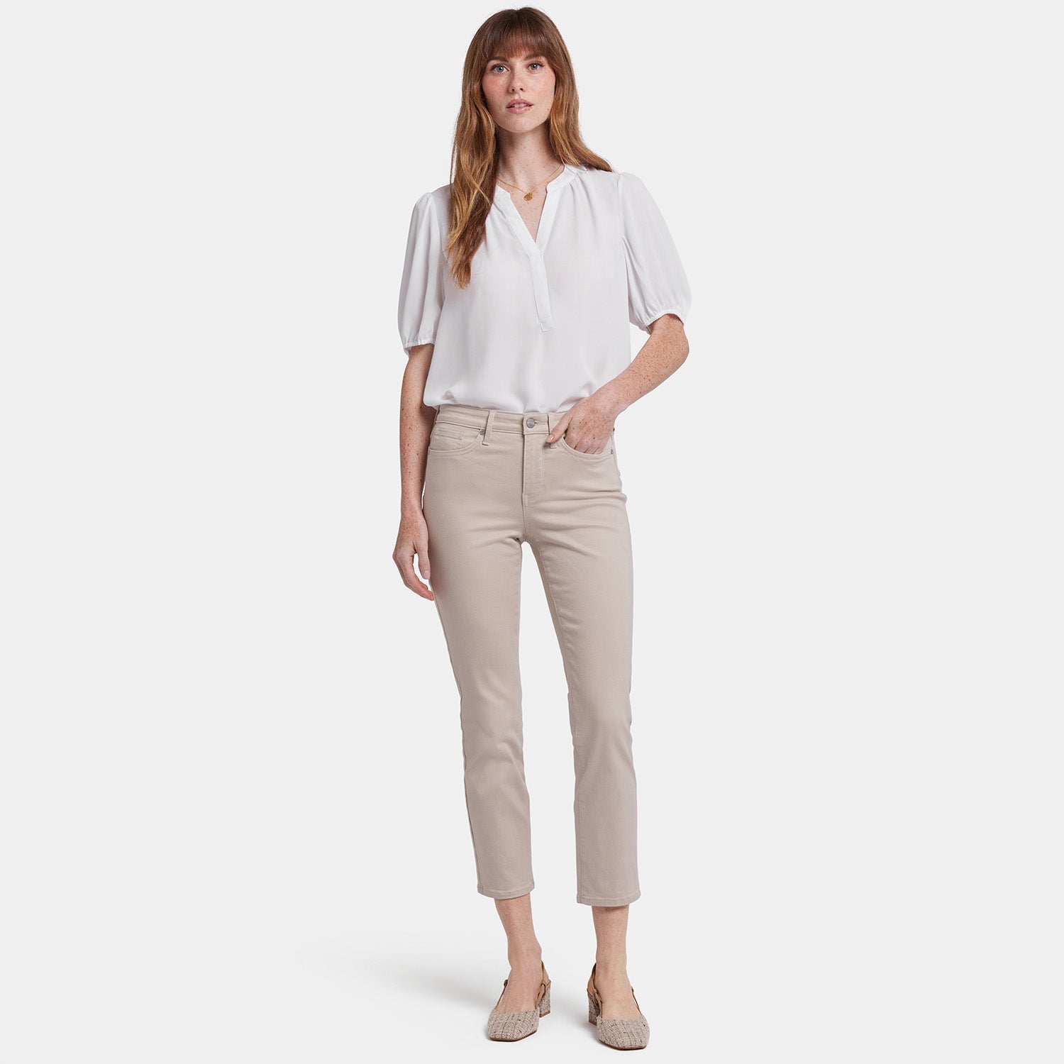 Between skinny and straight, you'll find the perfect body-hugging slim fit in NYDJ’s Sheri Slim Ankle Jeans. Enhance your assets and streamline your silhouette with our signature Lift Tuck® Technology, which flattens and flatters using a proprietary slimming panel with a patented criss-cross design. Features classic five-pocket styling, zip fly and button closure. This jean is made with earth-friendly methods that result in reduced consumption of water, chemicals and/or energy.