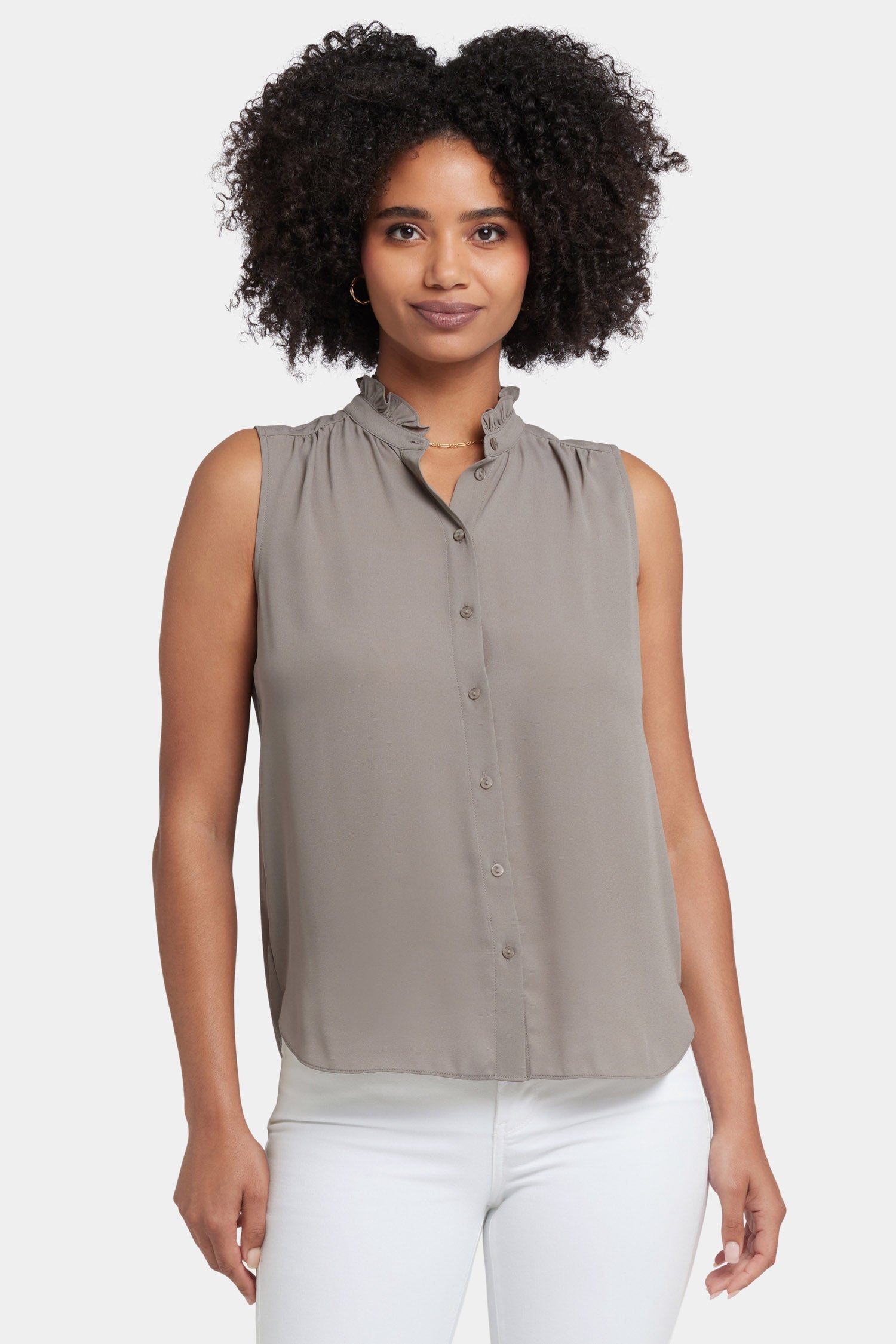 Sleeveless Ruffle Neck Blouse - Saddlewood