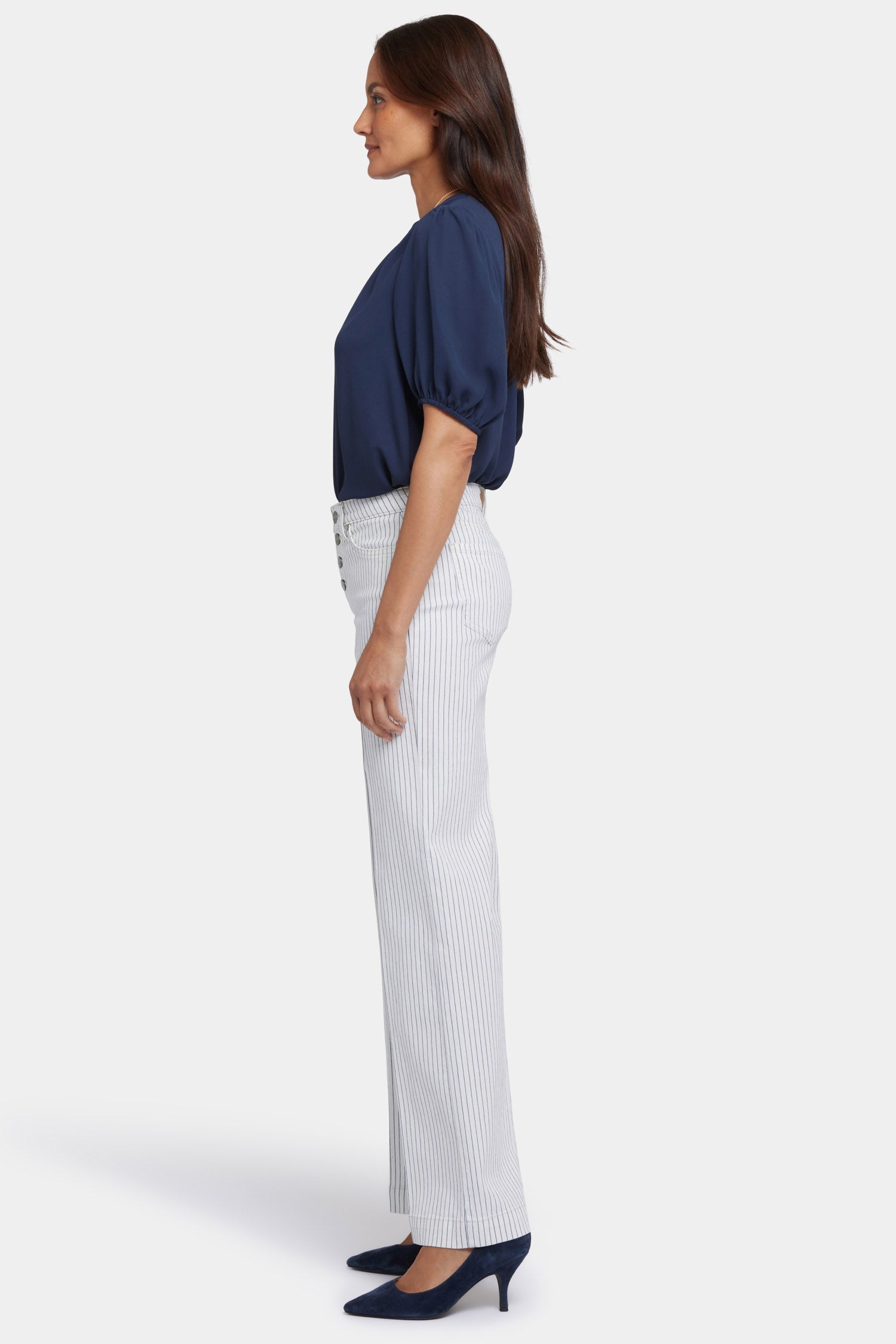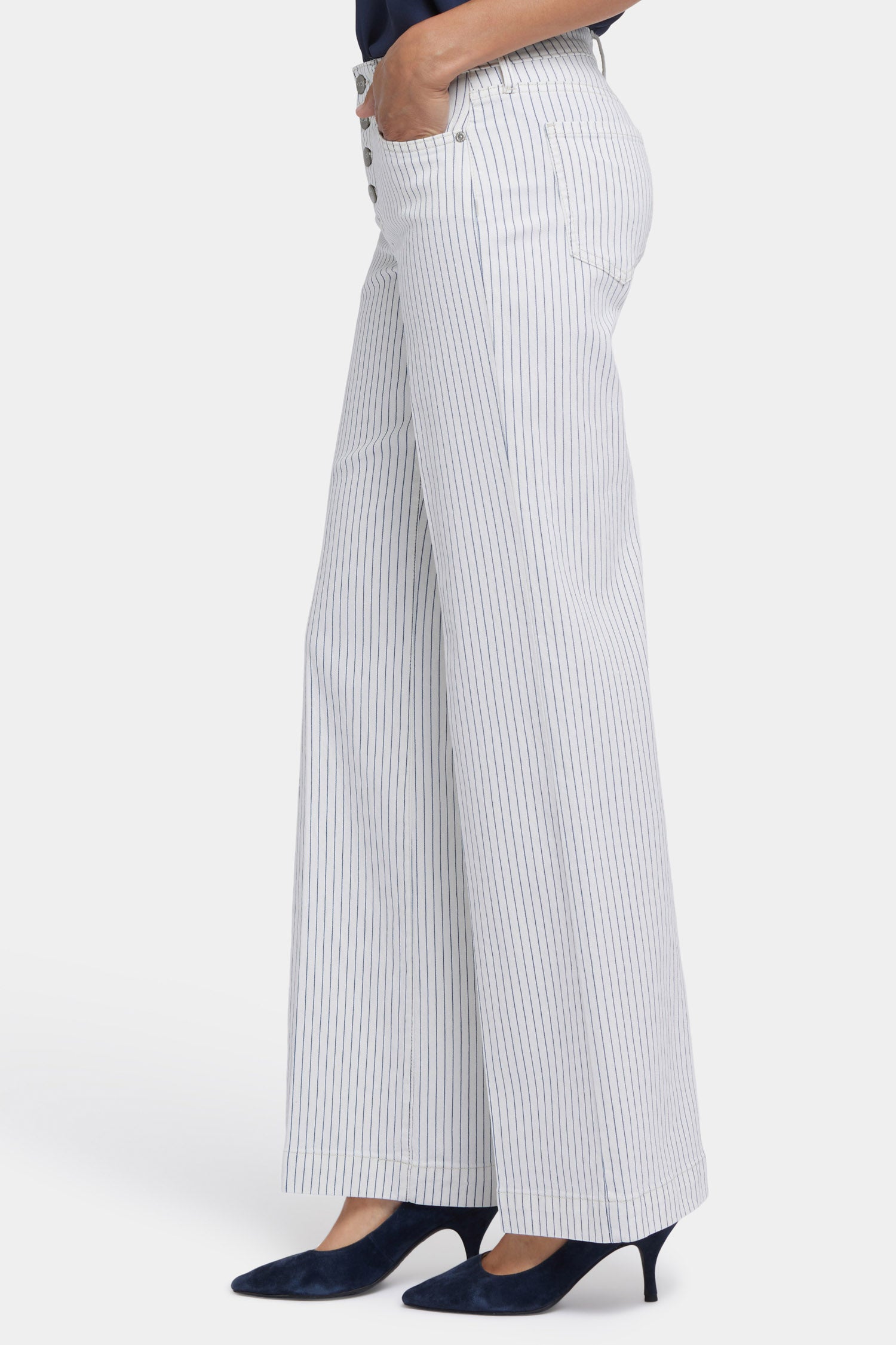 The Teresa Wide Leg Jeans by NYDJ cinch your waist, enhancing your natural silhouette. Their wide legs with deep, trouser-style hems add instant polish to everything you pair them with. Lift Tuck® Technology uses a proprietary slimming panel with a patented criss-cross design to smooth and sculpt. Features five-pocket styling and an exposed button fly. This jean is made with earth-friendly methods that result in reduced consumption of water, chemicals and/or energy.