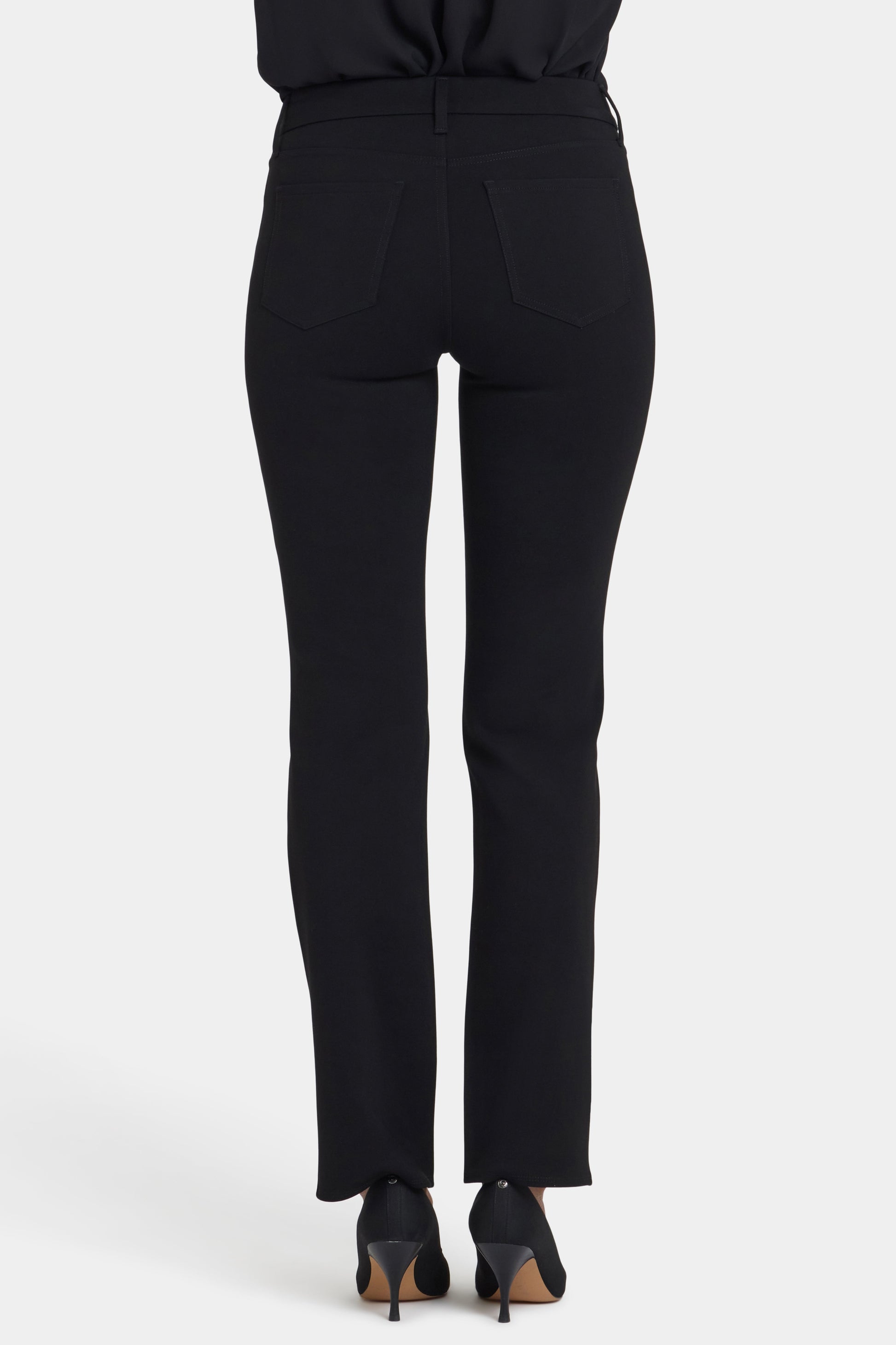 Our most popular silhouette, now in lightweight, super-sculpting compression vegan leather and compression ponte. NYDJ's Vegan Leather and Ponte Marilyn Straight Pants have a flattering and versatile straight-leg fit that elongates the figure, while their leather-like texture in the front adds a bold edge to outfits. Lift Tuck® Technology uses a proprietary slimming panel with a patented criss-cross design to shape and support your curves for even more sleekness. The styling of this pair is finished with five pockets and a zip fly with button closure. These pants are part of Sculpt-Her™, NYDJ's most novel collection of compression-contouring silhouettes with an unparalleled, cutting-edge fit.
